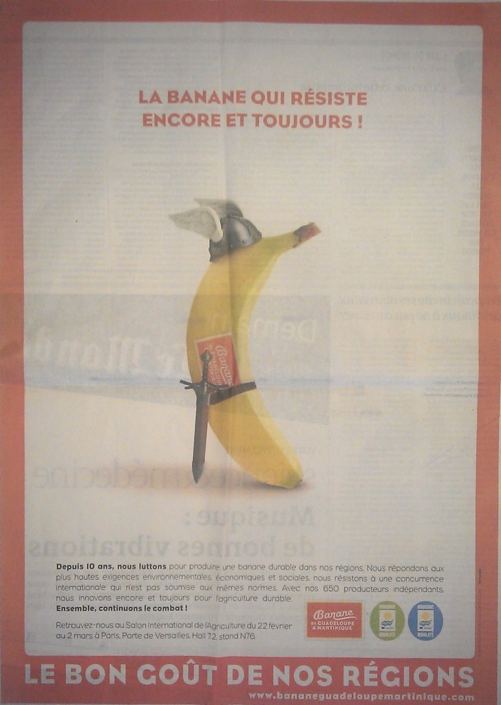 Pesticide destiné à éradiquer les charançons et augmenter la production de banane, la Chlordécone (également nommé Képone) a été interdite aux Etats-Unis en 1976, la licence cédée à une société Brésilienne avec changement de nom, interdite dans la communauté Européenne en 1990 avec une dérogation « banane » jusqu’en 1993 pour les DOM…. et une utilisation avérée en Martinique/Guadeloupe jusqu’en 2005 En bref, la molécule de Chlordécone a une grande stabilité naturelle (>3 000 ans), perturbateur endocrinien et neurotoxique, tout comme le nuage de Tchernobyl, elle ne passe pas les barrières phytosanitaires mises en place par les autorités, on croit rêver. Vingt ans plus tard, on trouve dans les Antilles Françaises des taux élevés de troubles du développement, de prématurité, de cancers de la prostate (la Guadeloupe en détient le triste record mondial en pourcentage), etc…