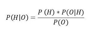 – P(O|H) la probabilité de O sachant H : si l’hypothèse H est vraie alors on devrait observer O avec une certaine probabilité