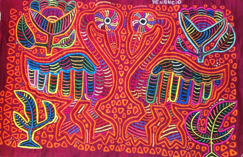 Mola. Les broderies sur plusieurs épaisseurs de tissus reprennent des motifs traditionnels, animaux ou dessins géométriques.