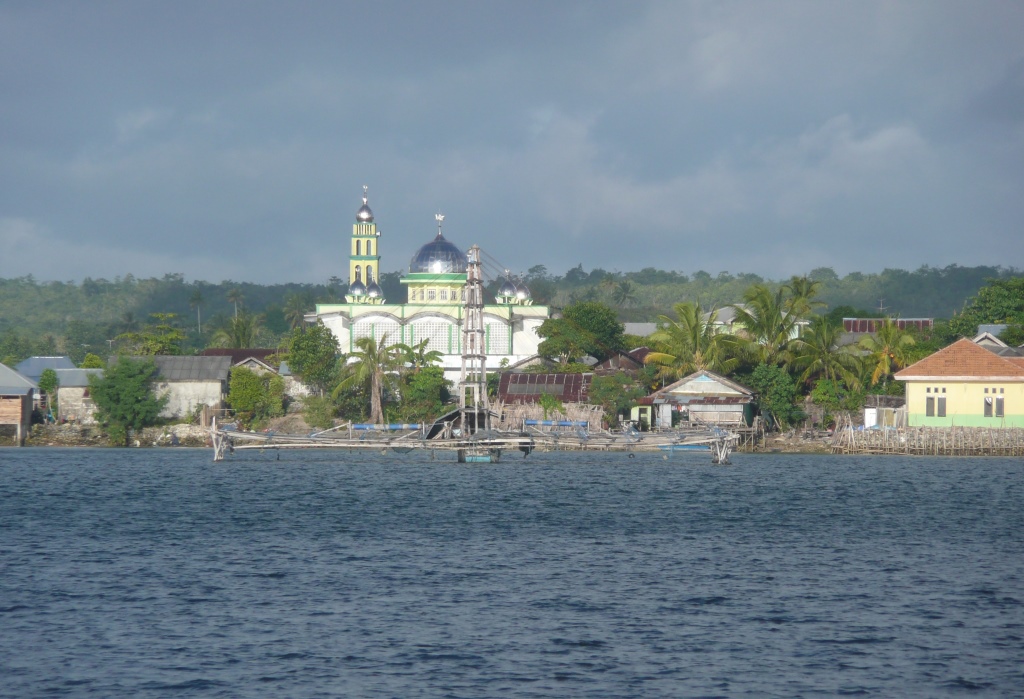 Pudiquement, l’histoire est racontée en indiquant que l’opération a été menée par un groupe politique après une querelle électorale. Mais ce pont relie la communauté Catholique de Langgur à celle Musulmane de Tual. La différence culturelle est forte : accueil souriant, maisons simples mais bien entretenues et colorées, écoles en bon état avec des profs d’un côté, accueil plus mitigée de l’autre qui est marginalement pouilleux, écoles désertées et les enfants de la « haute » traversent (hijab de rigueur pour les filles) pour aller à l’école, mais jamais dans l’autre sens. Rien n’est dit, tout est exprimé par sous-entendus. Les cinq prières par jour s’élèvent des mosquées, les seuls bâtiments en bon état et de l’autre côté, les gars s’amusent “comme des petits fous” à démarrer une demi-heure avant avec tambours et pipeaux ultra-perçants, genre juste une fête locale qui ne saurait en rien être provoc… chaud. Ce contraste est également perceptible à Début, de l’autre côté de l’île.