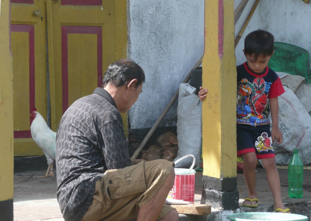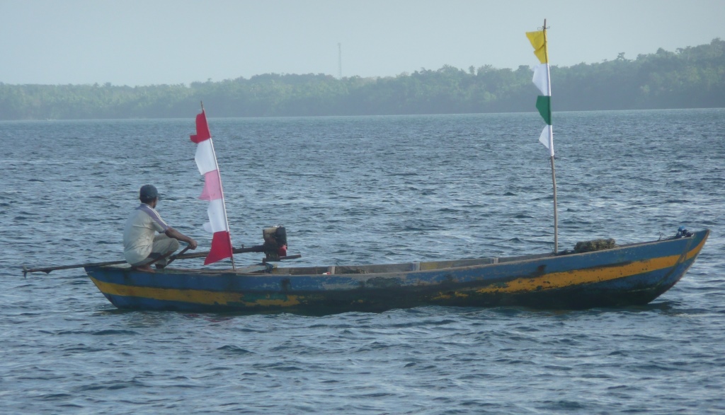 Chaque famille se bat pour l’argent, du travail ou le pouvoir politique qui lui donnera l’accès aux ressources qui s’amenuisent drastiquement. Sur ces iles où plus rien ne pousse, la couche de terre est trop fine pour l’agriculture, tous les produits frais sont importés et la spécialité locale est le cassava, une forme de manioc. Toutes les baies, chenaux raisonnablement abrités de la houle et des tempêtes d’Ouest sont encombrés de filets accrochés à des bouées ou des bouteilles plastiques. La surexploitation des ressources halieutiques est sidérante. Et pourtant le marché aux poissons est désolant : toute la belle pêche part sur Bali, puis en Chine ou au Japon. Seuls les invendables sont mangés localement. Les œufs sont la principale source de protéines. Un pêcheur accompagné de ses 7 enfants est venu dans sa pirogue à moteur nous proposer une tortue. Il ne pouvait pas la manger, elle était «haram» (interdit) comme tout autre animal à écaille; ceux de la porte à côté, les Rabbins discutent à n’en plus finir sur l’anguille, poisson (ok) mais à écailles (pas glop)…. chacun ses trucs.