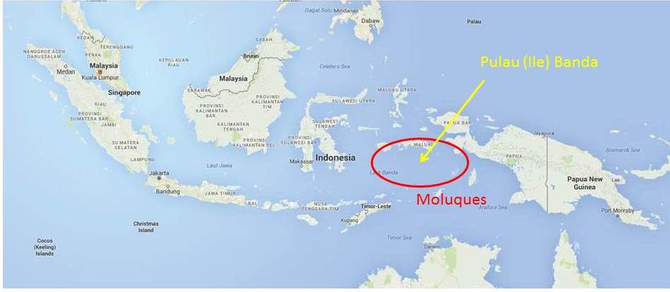 De nos jours, la province des Moluques, aux forts traits Mélanésiens (la Papouasie n’est pas loin) est considérée comme arriérée et les réformes ou avancées techniques (réseau Internet, LPG…) y parviennent en dernier. Pourtant, au 16ème siècle, ces archipels étaient le centre de convoitise des puissances Européennes : sur les cendres des volcans poussaient des plantes magiques, qui justifiaient toutes les ambitions d’explorateurs, spéculations des marchands et ruses de politiciens : les Hollandais avaient sciemment détruit tout plan de muscade hors l’île de Banda ce, afin de mieux contrôler le marché (quelle élégance !) ; leur monopole dura quelques années (un siècle et demi quand même) puis les Anglais, virés de l’archipel, volèrent quelques pieds pour les replanter à Ceylan puis aux Antilles, à Grenade par exemple où la noix orne le drapeau national.