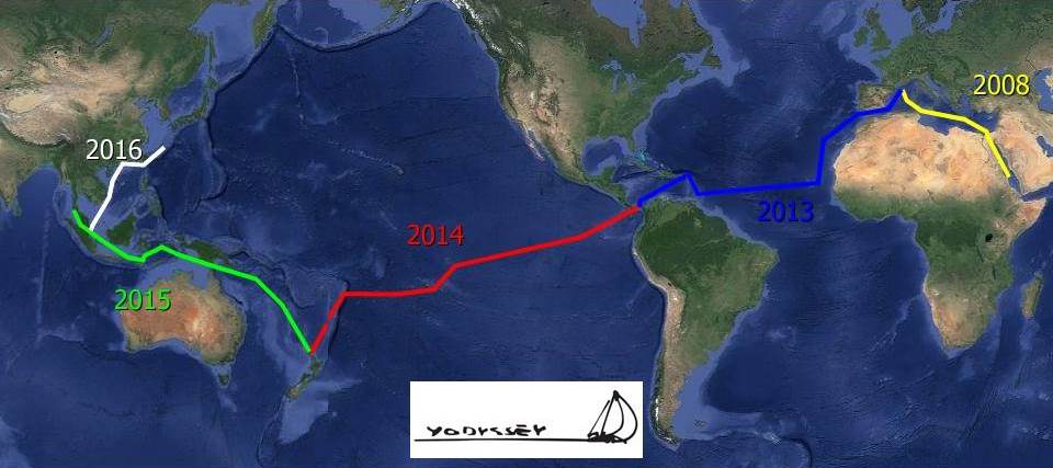 Trois ans de routes 2013-2016, 25000 miles nautiques, bien plus qu’un tour du monde ; fini les longues navigations, une pause s’impose, il est temps d’apprendre le Japonais. Les longs billets sont en suspens, place désormais aux mini reportages photos de Japanouilleries. Pastafarisme oblige.