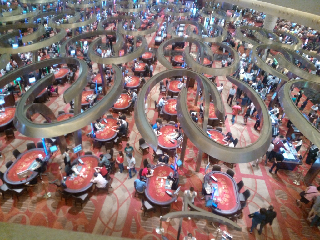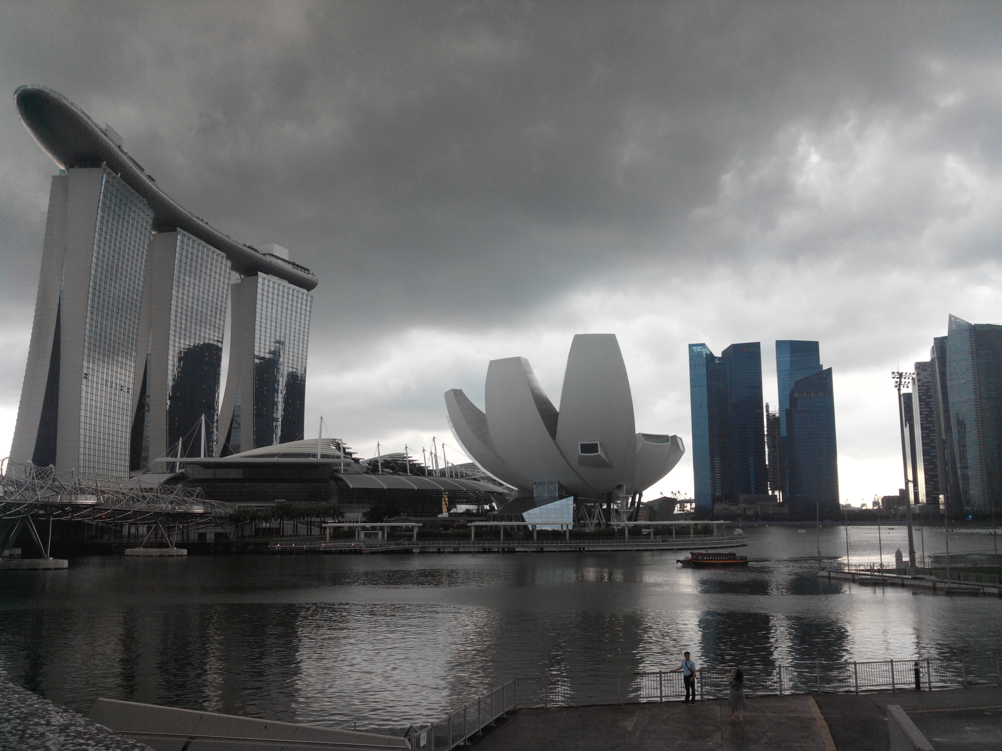 Le Marina Bay Sands est un hôtel de 2560 chambres. Il abrite un casino et une piscine à débordement posée sur le dernier étage, le tout sis à côté d’un immense centre commercial où se côtoient les enseignes de luxe. Il est le symbole de la démesure de Singapour mais a pour fonction d’accroître la durée moyenne de séjour touristique sur l’ile, de 2.5 à 3 jours…