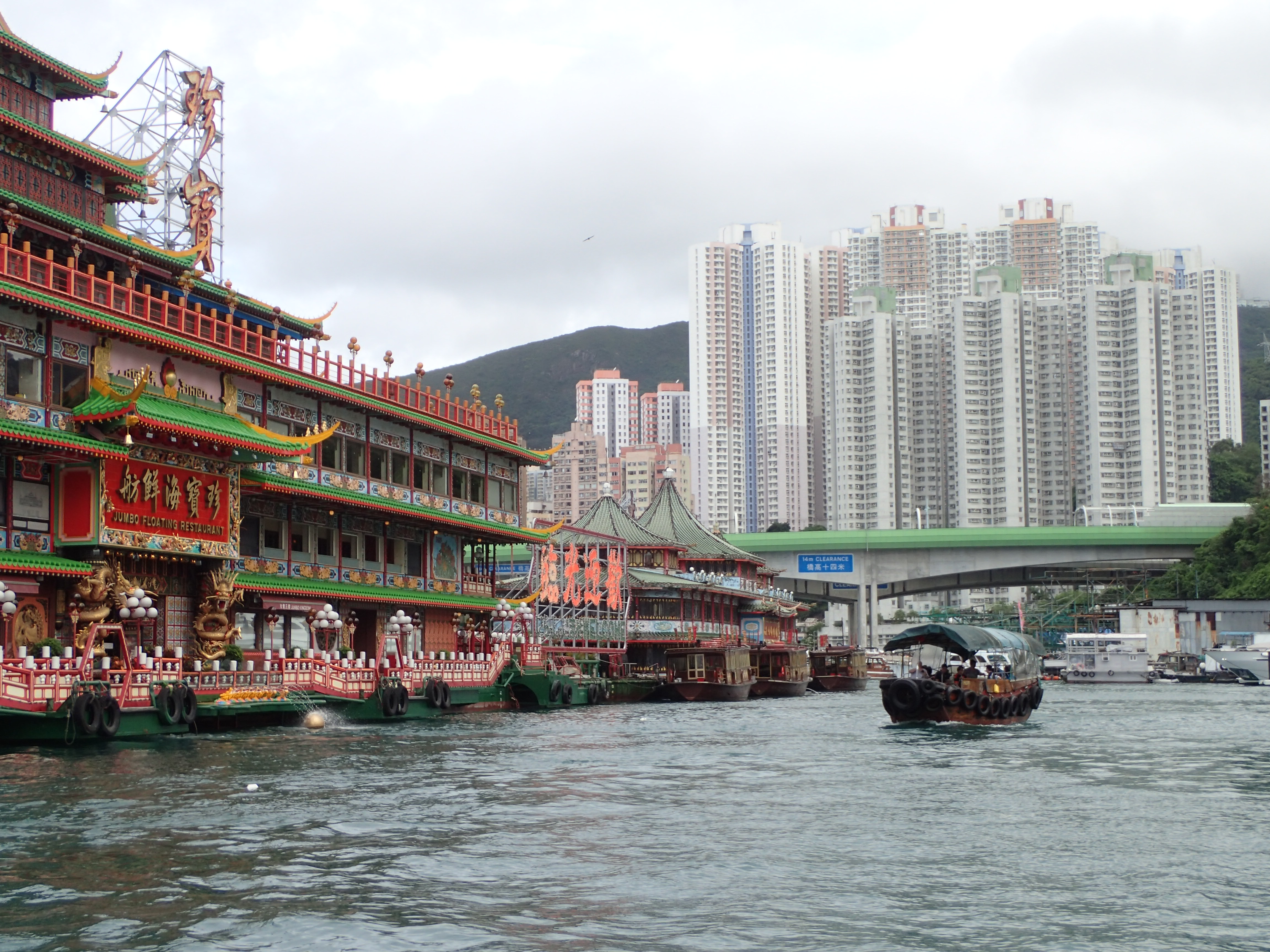 Hong Kong – Sampan en maraude dans le port d’Aberdeen situé au sud de l’ile dans un trou à cyclone. Le village flottant de jonques et de sampans, incendié le 25 décembre 1986 – 150 sampans coulés –, bordel traditionnel de la ville a été remplacé par une marina et les immeubles d’habitation ont grignoté la jungle. Quelques sampans continuent à faire taxi.
