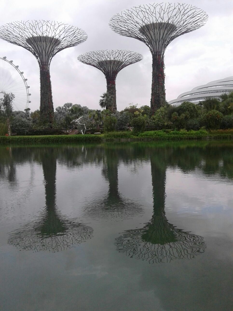 Singapour – Gardens by the bay. Grâce au sable acheté/trafiqué en Indonésie, 23 % de la ville est bâtie sur de la terre conquise sur la mer (reclaimed land). La politique verte menée par Lee Kwon Yew -le grand jardinier- a transformé la cité en jardin. Le surnom « Red Dot » fait référence au minuscule point sur la carte du Sud-Est Asiatique que représente S’pour par opposition aux géants de l’Indonésie et de la Malaisie. Il symbolise également le contraste « communiste » face aux deux régimes musulmans.